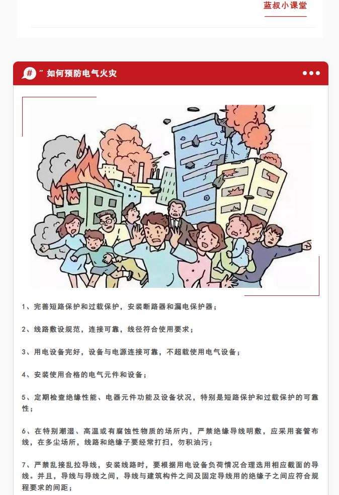 蓝叔小课堂 | 在日常生活中应当如何预防电气火灾事故发生?